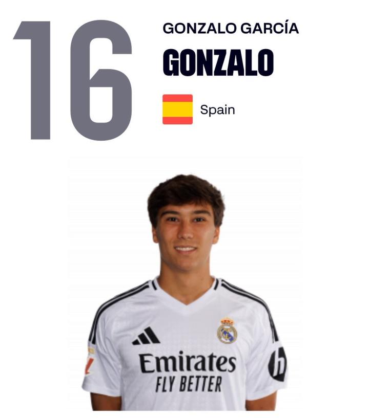 在今年世俱杯前,效力于皇马卡斯蒂亚的贡萨洛-加西亚只为一线队出场6次,打入1球。
