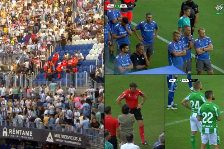 报道称,在马拉加与贝蒂斯的比赛中,比赛开始仅仅三分钟后,裁判突然暂停了比赛,以便在看台上为一名球迷提供紧急医疗救助。