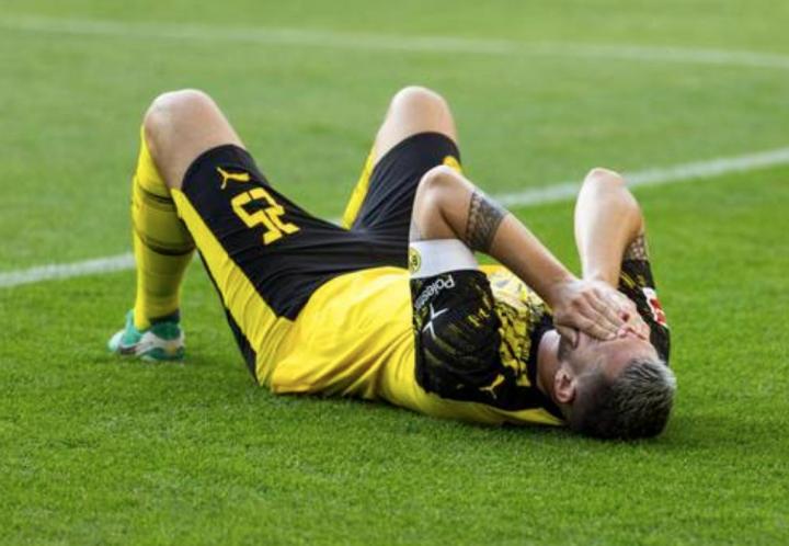 在一次回传后,聚勒的右脚不幸扭伤,他仰面躺在地上用双手捂住脸。