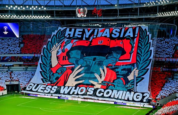【迎接亚冠!赛前成都球迷看台展示巨型Tifo】
