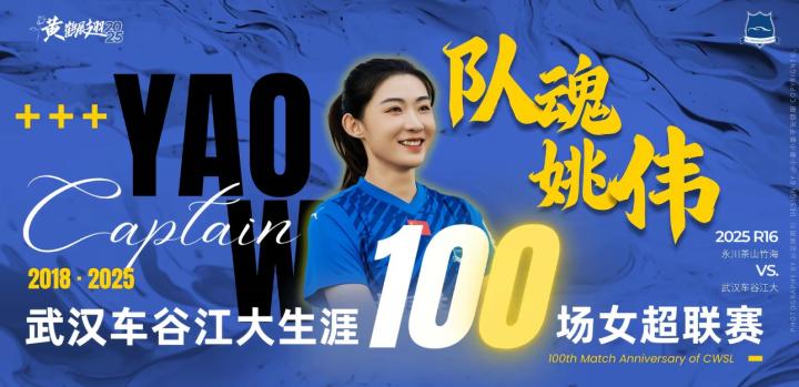 北京时间8月13日晚,中国女超联赛第16轮,武汉车谷江大女足客场2-0击败永川茶山竹海橙狮女足。此役,中国女足国脚姚伟完成其武汉车谷江大生涯第100场女超联赛。