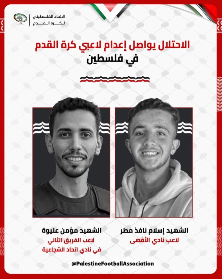 北京时间8月15日,据巴勒斯坦足协官方消息,阿克萨俱乐部球员伊斯梅尔-纳菲兹-马塔尔与舒贾耶亚联盟二队球员穆阿迈尔-阿里瓦在以色列袭击中不幸遇难。