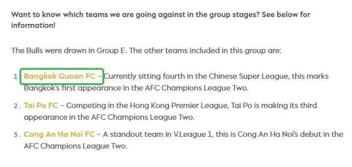 麦克阿瑟FC官方写道:“曼谷国安足球俱乐部(Bangkok Guoan FC)——目前位列中超联赛第四名,此次是该曼谷(国安)首次亮相亚冠二级联赛。”