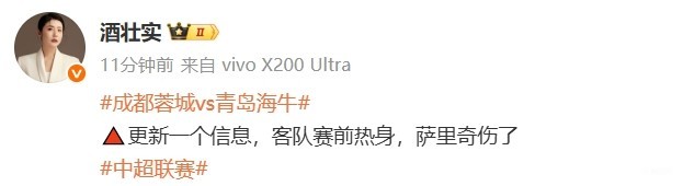 媒体人“酒壮实”透露:今天青岛海牛队赛前热身时,中场外援萨里奇受伤了。