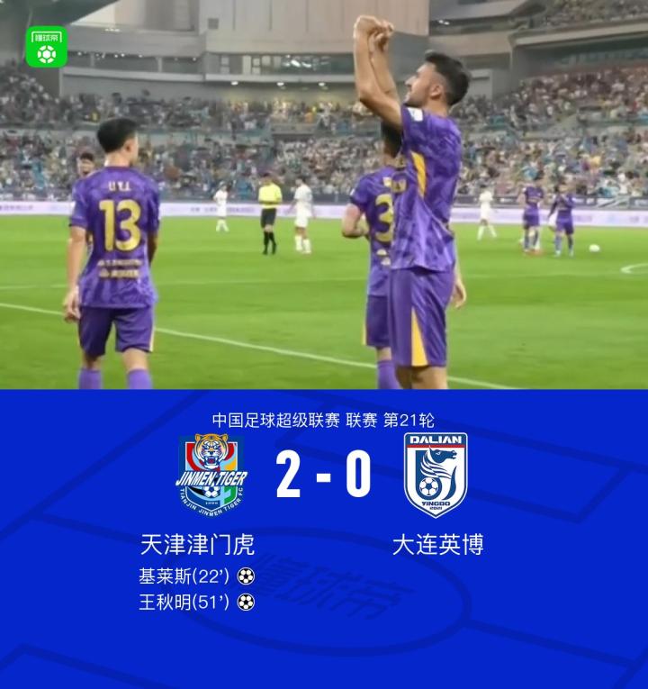 津门虎2-0英博终结3轮不胜,基莱斯世界波,王秋明传射