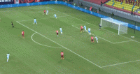 第17分钟,莱切特长传转移,随后甘超射门被封堵