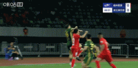 第1分钟,童磊起跳争顶手肘与饶伟辉头部有接触,后者痛苦倒地
