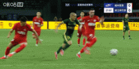 第45+5分钟,三分钟两球,弗兰克梅开二度,浙江2-1反超梅州