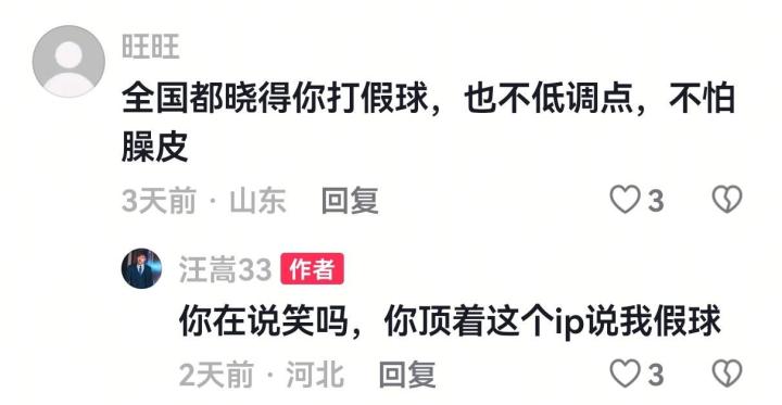 一位IP地址为山东的网友在评论区斥责他:“全国都晓得你打假球,也不低调点,不怕臊皮。”