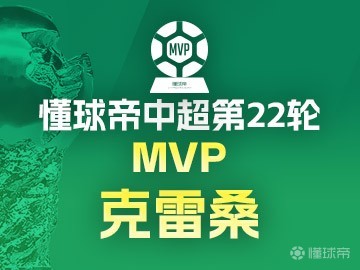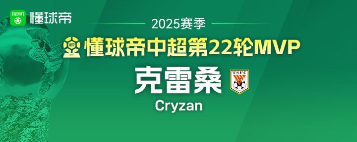【懂球帝2025赛季中超第22轮MVP:克雷桑】