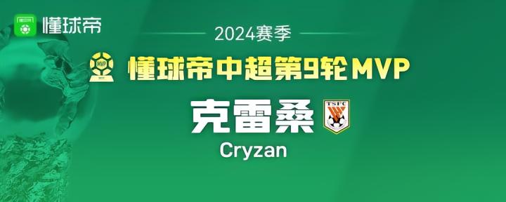 【懂球帝2024赛季中超第9轮MVP:克雷桑】