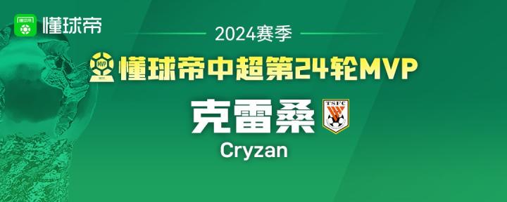 【懂球帝2024赛季中超第24轮MVP:克雷桑】