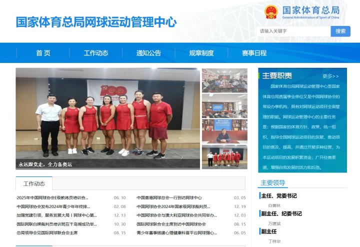 国家体育总局网球运动管理中心是国家体育总局直属事业单位又是中国网球协会的常设办事机构,具有对网球运动项目全面管理的职能。网球运动管理中心的主要任务是:根据国家的体育方针、政策,统一组织、指导全国网球运动项目的发展,推动项目的普及、提高,并通过开展多种经营,为本运动项目的发展积累资金;广开经费渠道,增强自我发展的活力和后劲。