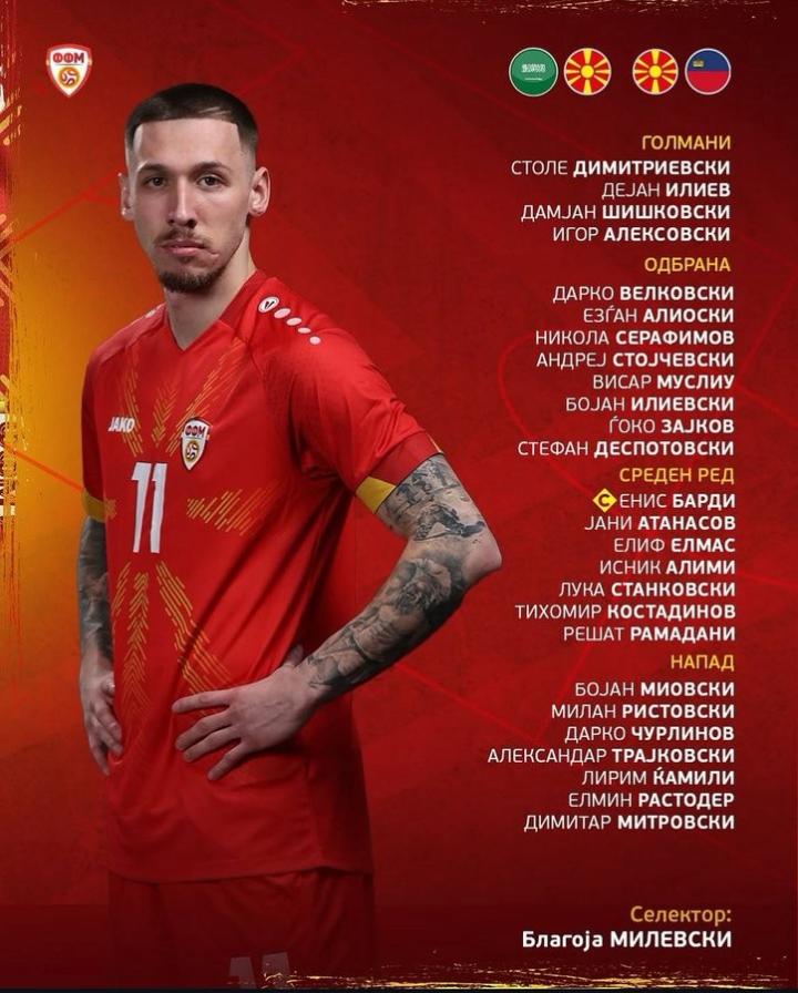 北马其顿足协官方公布了新一期国家队大名单,埃尔马斯领衔,大连英博外援阿利米入选。