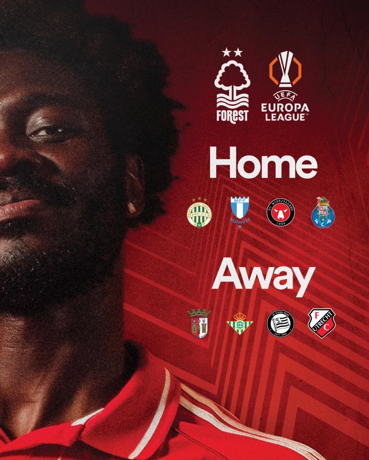 森林抽到的对手为,波尔图、贝蒂斯、费伦茨瓦罗斯、布拉加、中日德兰、格拉茨风波、马尔默、乌德勒支。
