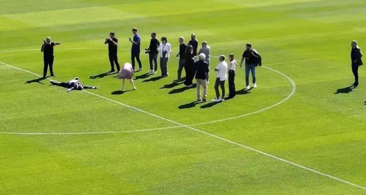 据《每日体育报》消息,巴塞罗那俱乐部主席拉波尔塔近日出现在正在翻修的Spotify诺坎普球场,并被拍到一张颇为特别的画面——他身着西装,平躺在球场中央圆圈的草坪上。