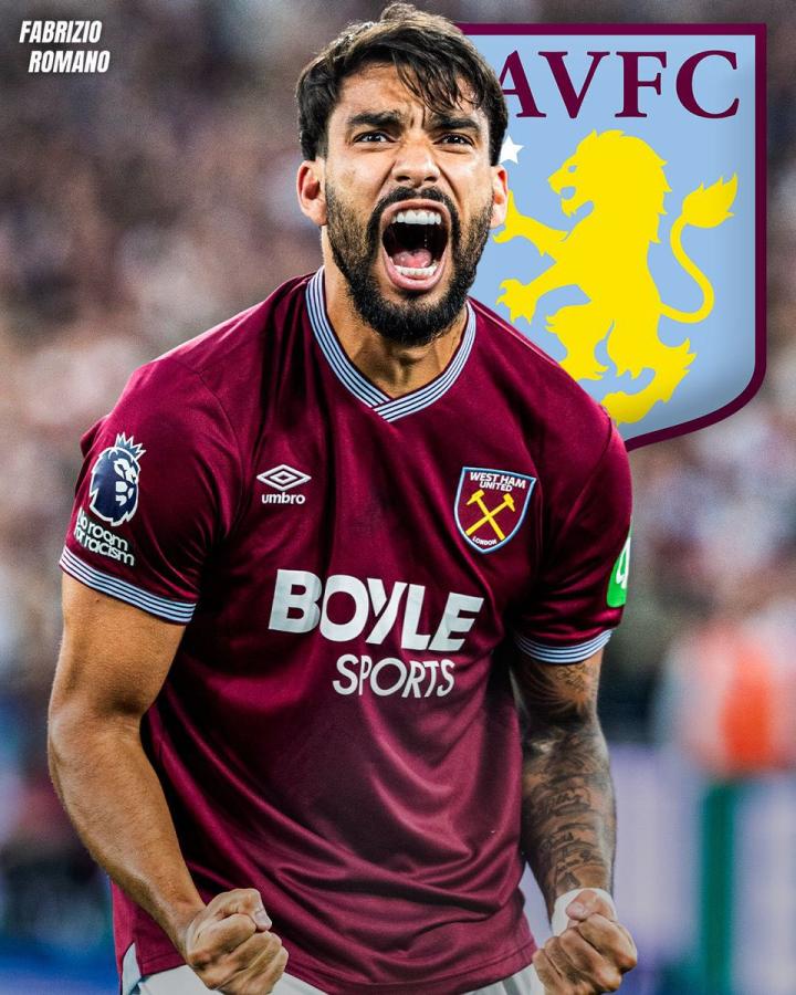名记罗马诺消息,阿斯顿维拉已经非常接近签下西汉姆联中场帕奎塔。