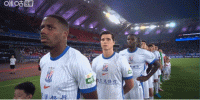 现场正在奏唱国歌,比赛即将开始