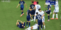 第15分钟,双方球员相撞后倒地,随后爆发多人冲突