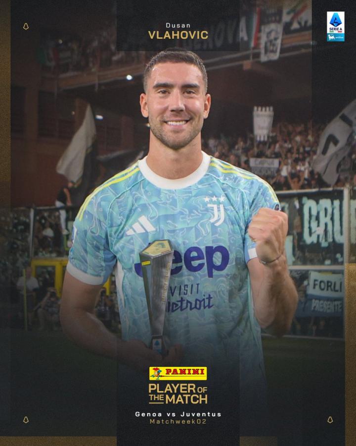 官方消息,弗拉霍维奇当选热那亚对阵尤文图斯一役全场最佳。