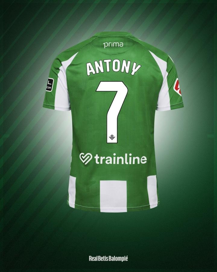 在确认安东尼以永久转会的方式从曼联加盟后,皇家贝蒂斯也公布了这位巴西前锋的球衣号码。