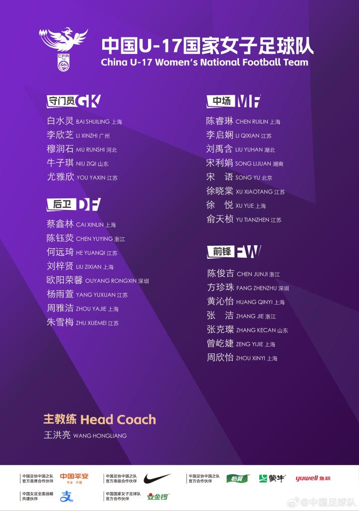 9月3日,中国足协公布了U17女足的集训名单,王洪亮继续挂帅。