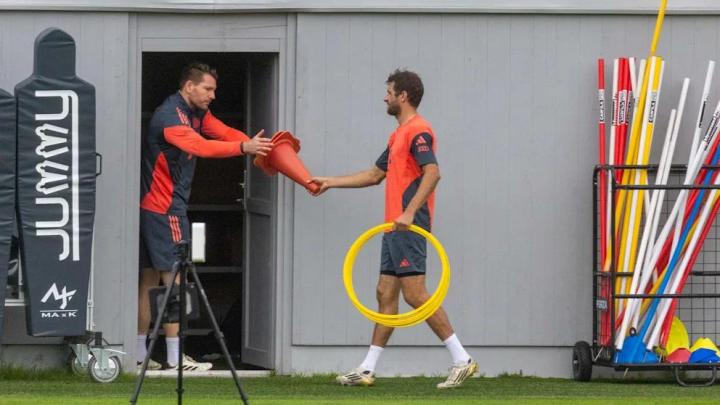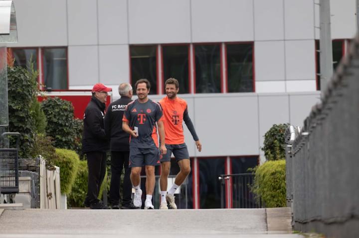 当天的训练中,穆勒与21岁的亚历山大-帕夫洛维奇(伤愈复出)及18岁的锋线新星费利佩-查韦斯一同参加体能课程。拜仁主教练孔帕尼给予多名一线队主力休假(包括诺伊尔、乌尔赖希、博埃等),而体能教练扬-菲利普-赫斯特曼则为三人安排了完整训练路线。从体操环、小栏架、绕杆协调训练,到阻力带冲刺、头球和60米全力冲刺,最后再以短距离冲刺和慢跑收尾,整堂课程持续52分钟。