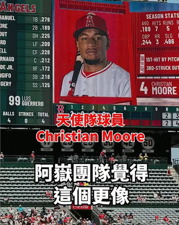 不过随后张震岳团队贴出了效力于MLB天使队的球员克里斯蒂安-摩尔的照片,并表示这个更像。
