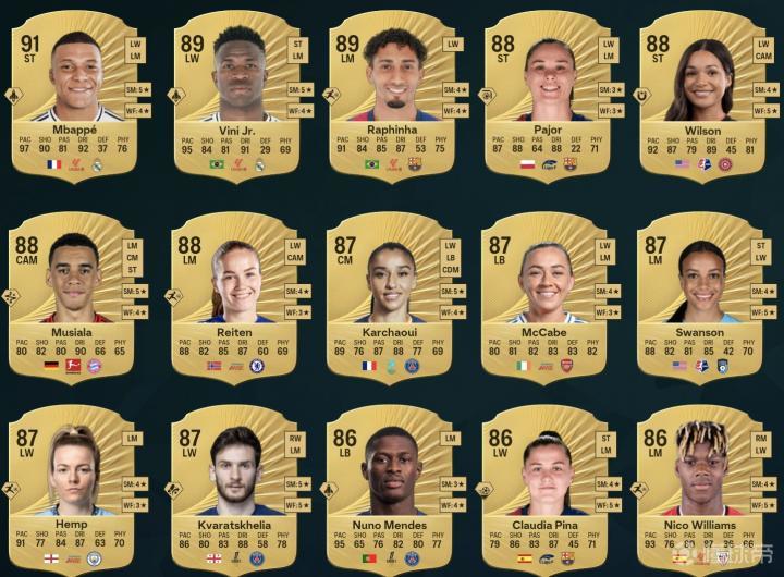 《FC26》中的左边锋和左边前卫的能力值已经被曝光,其中,姆巴佩第一,拉菲尼亚和维尼修斯并列第二。