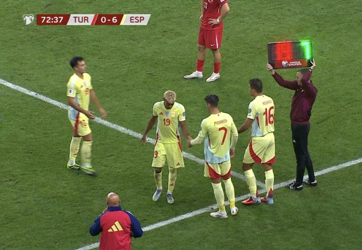 欧洲区世预赛,西班牙队客场对阵土耳其队,下半场莫拉塔替补登场,成为首位代表七家俱乐部为西班牙国家队出战的球员。