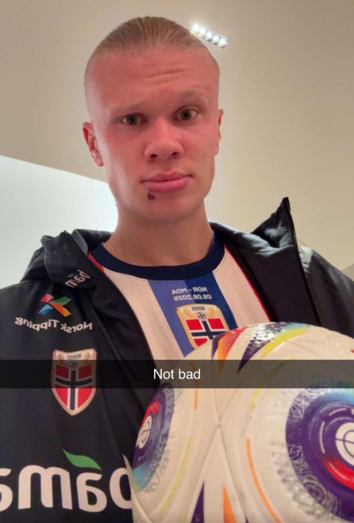 赛后,哈兰德在社交媒体晒出他手拿着比赛用球的照片,并配文:“还不错。”