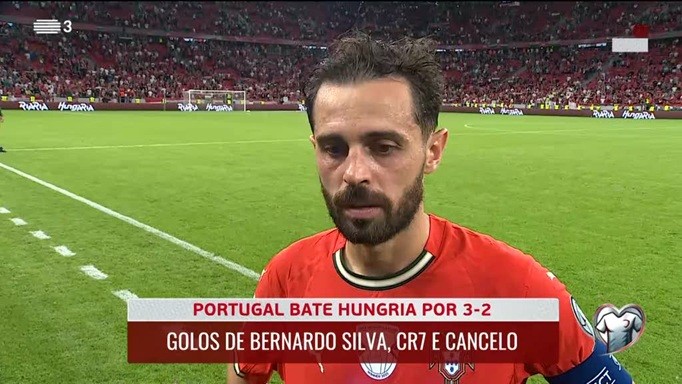 世界杯欧洲区预选赛第一阶段第6轮一场较量,葡萄牙客场3-2力克匈牙利。赛后,进球功臣伯纳多-席尔瓦接受了RTP的采访。