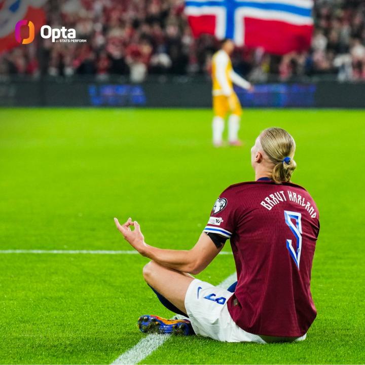 在与摩尔多瓦的欧洲区世预赛中,挪威前锋哈兰德打入5球,成为近48年来首位在世欧预单场打入5球的球员。