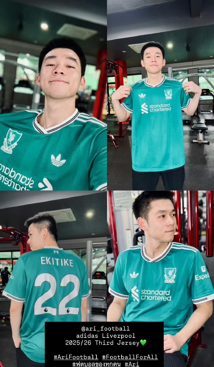 近日,泰国羽毛球名将昆拉武特更新社媒,身穿最新款利物浦二客球衣。