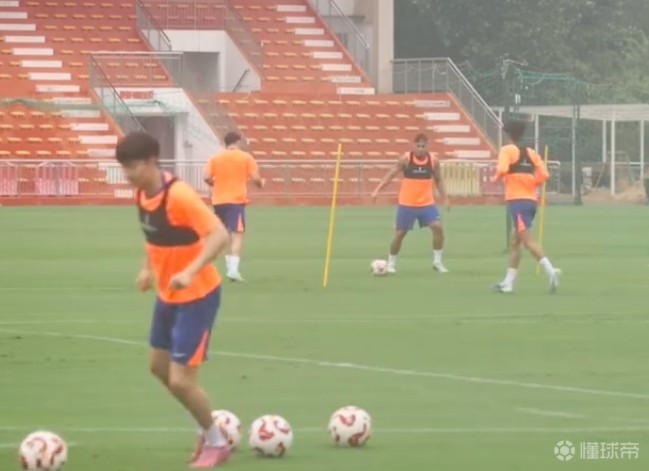 训练开始前,教练组和全队有相对较长时间的沟通,全队在场地内围在一起,韩鹏和大家交代训练的细节。泰山队的训练还是以慢跑和传接球训练为主,只有22名球员参加。瓦科和李小恒在训练里是传接球的搭档,本场对阵申花,两人一起首发的可能性也很大。