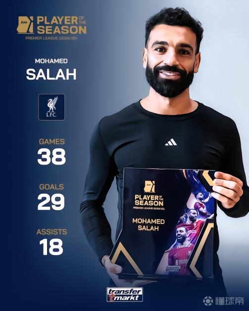 官方消息,萨拉赫当选德国转会市场2024-25赛季英超最佳球员。