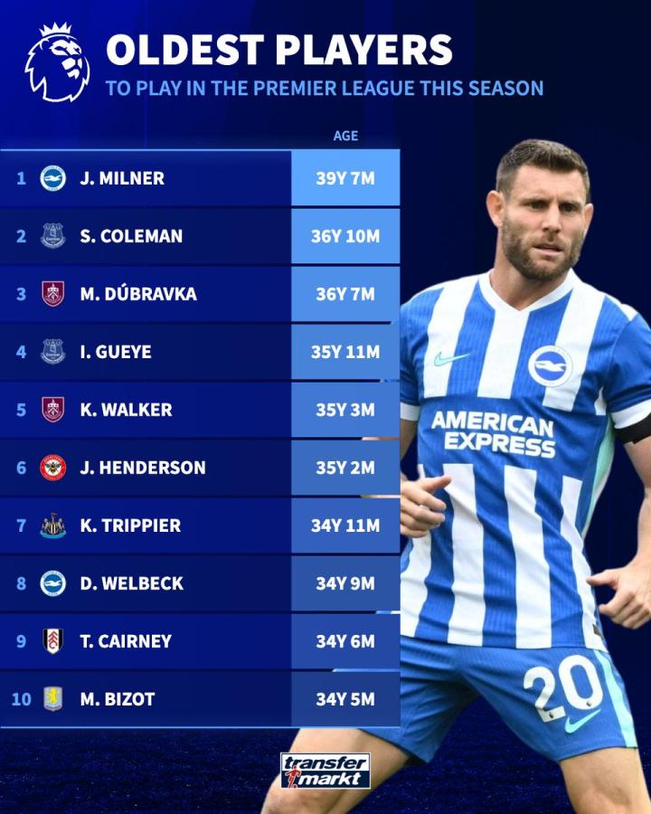 1.米尔纳 布莱顿 39岁7个月