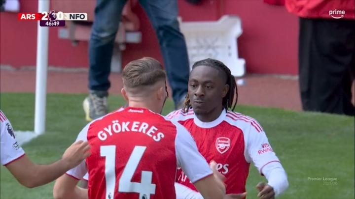英超第4轮,阿森纳主场对阵诺丁汉森林,下半场埃泽助攻哲凯赖什破门,送出阿森纳生涯首次助攻。