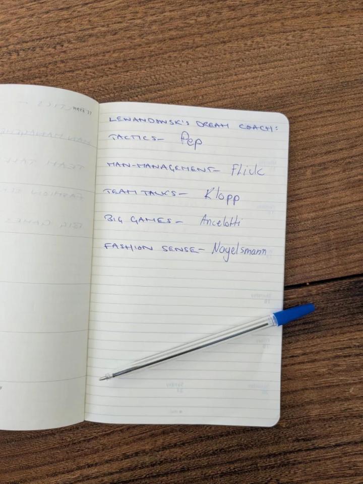 泰晤士小注:弗格森本会成为执教过莱万的众多顶级教练之一。他的教练名单上有:克洛普(多特)、瓜迪奥拉、安切洛蒂、弗里克和纳格尔斯曼(拜仁);在巴萨,他先是哈维,现在又是弗里克。莱万在笔记本上写下每位教练的特长,以组合成梦幻教练:战术是瓜迪奥拉,管理是弗里克,动员讲话是克洛普,大赛是安切洛蒂。至于穿衣最佳,他犹豫了一下,最后给了纳格尔斯曼。