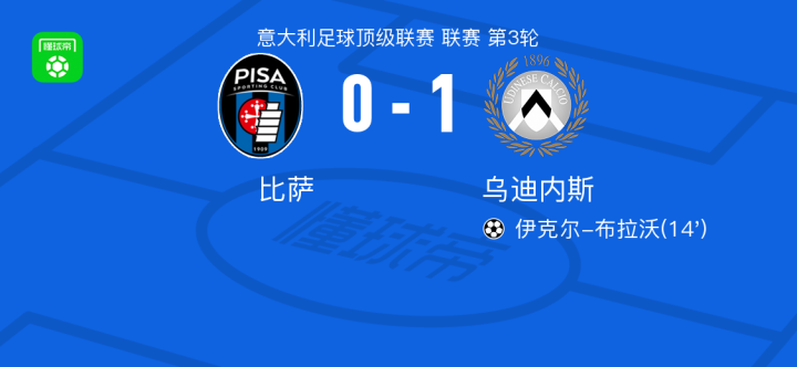 乌迪内斯1-0比萨,伊克尔-布拉沃制胜