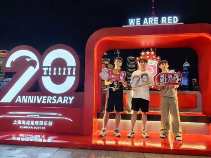 14日晚上19点,趁着放假,海港球员傅欢与李智良一同现身北外滩国客中心码头,在这之前,已经有不少海港球迷聚集于此。自8月29日起,上海海港足球俱乐部就在这里设立了20周年纪念打卡点,过去近三周时间里吸引了诸多球迷前往。与此同时,打卡点旁的周边商铺也得到大家青睐,傅欢与李智良两人也为现场球迷签名合影。此前,李圣龙、杨世元也曾来此打卡。