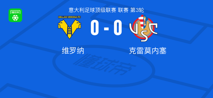 维罗纳0-0克雷莫内塞,两队破门乏术