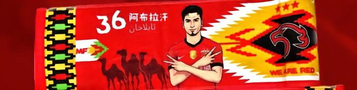 两位球员均来自新疆喀什,纪念巾背景采用新疆艾德莱斯绸的经典几何纹样,底纹为石榴图案,寓意团结与融合,体现文化自信,契合球员与温暖的海港大家庭同心共进的精神。