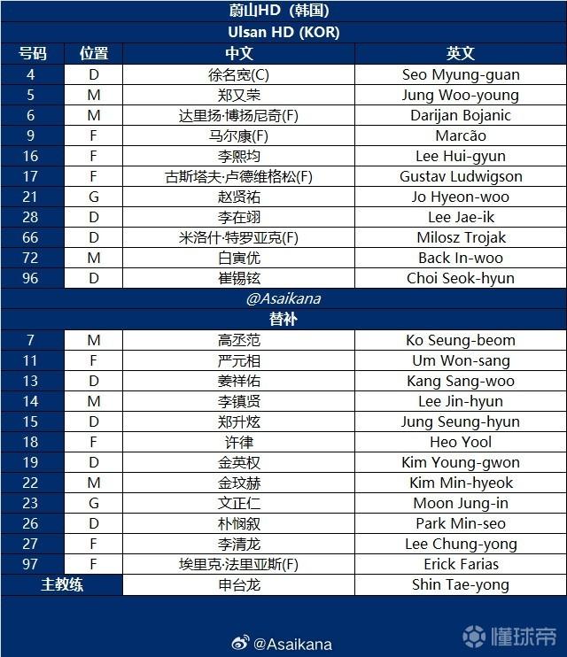 北京时间9月17日18:00,亚冠精英联赛第一轮,成都蓉城客场对阵蔚山HD,本场比赛主裁判是乌兹别克斯坦裁判坦塔谢夫,VAR是乌兹别克裁判里斯库拉耶夫,赛前双方公布首发: