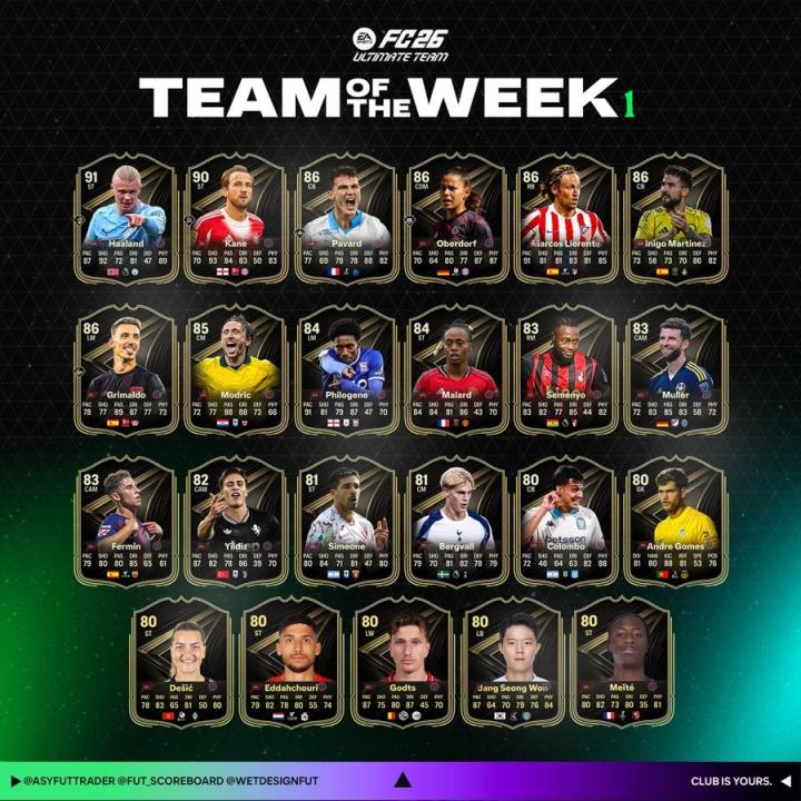 《FC26》的首周周黑已经遭到曝光,其中,凯恩、哈兰德、费尔明、略伦特、帕瓦尔在列。