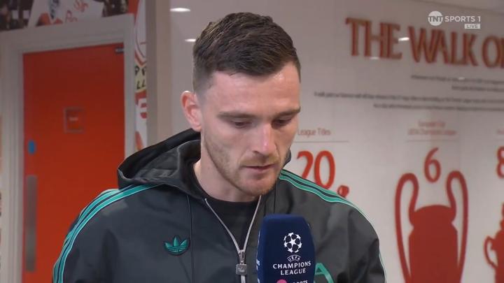 在欧冠联赛阶段首轮主场迎战马德里竞技的比赛开始前,利物浦后卫罗伯逊接受了来自TNT体育的采访。