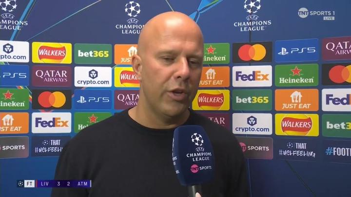 率队在欧冠联赛阶段首轮主场3-2击败马德里竞技之后,利物浦主教练斯洛特接受了来自TNT体育的采访。