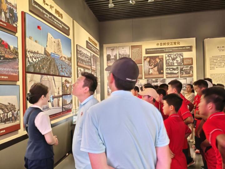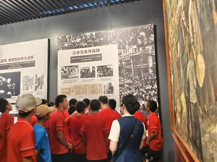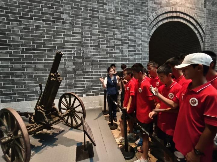 活动当天,随着大巴车的缓缓驶入,“九·一八”历史博物馆映入了队员们的眼帘。全体队员带着对历史的敬畏与追思,有序步入馆内。在专业讲解员的引导下,依次参观了“九·一八”事变展厅、抗日战争展厅等多个展区。走进这历史的隧道:一幅幅珍贵的历史照片、一件件饱经风霜的文物、一段段震撼人心的故事,将队员们浸润进一个又一个历史场景,让他们仿佛穿越时空,亲身经历了那段波澜壮阔的历史。看着一幅幅珍贵的历史照片、一件件承载着苦难与抗争的文物,小球员们不时发出阵阵感慨,有的孩子眼中还闪烁着泪花,被先辈们的爱国精神和牺牲精神深深打动。