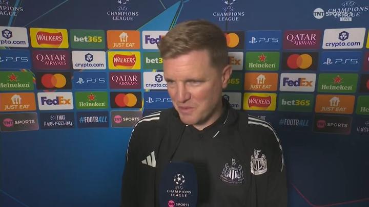 率队在欧冠联赛阶段首轮主场1-2负于巴塞罗那之后,纽卡斯尔联主教练埃迪-豪接受了来自TNT体育的采访。