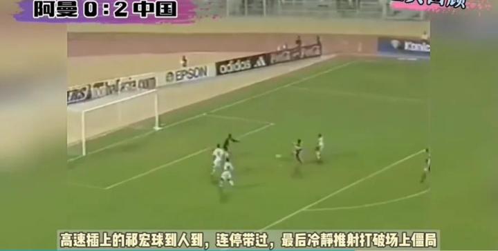 第二个进球,是面对阿曼队,祁宏也是插上。先是前锋拉边,带开对手的防守球员,然后边路传中,此时祁宏拍马赶到。